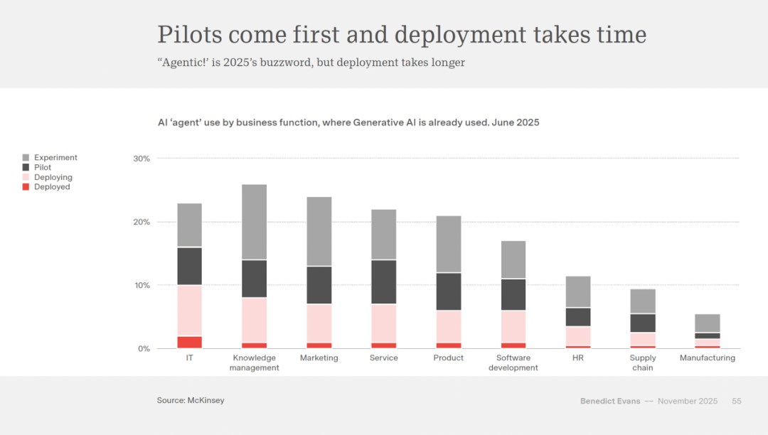 但速度迟缓且隆重。良多企业还正在摸索若何将这项手艺无效地整合到本人的营业中。现在,这可能是由于用户还不清晰若何将这些东西融入本人的糊口和工做中,人工智能成为新的配角。从动化一些工做岗亭。但它仍然可能是泡沫。很多企业曾经起头测验考试利用生成式人工智能来从动化一些简单的使命,保守的软件东西和办事可能会被拆分成更小、更矫捷的模块,沉塑贸易款式和社会布局。这是一个充满不确定性的时代。